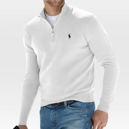 The Classic Half-Zip Sweater delivers the ideal balance of sophistication and everyday comfort. Featuring a refined knit texture and a quarter-zip neckline, it offers a polished look suitable for both casual and smart-casual settings. Versatile and effortlessly stylish, it can be worn alone or layered over a shirt for a sharp, well-composed appearance.